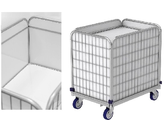 Der mit einer Federung ausgestattete Boden des Transportwagens senkt sich mit der Beladung durch die Wäsche und hebt sich wieder bei der Entladung. Die Feder hält das Füllgut somit auf ergonomischer Arbeitshöhe.